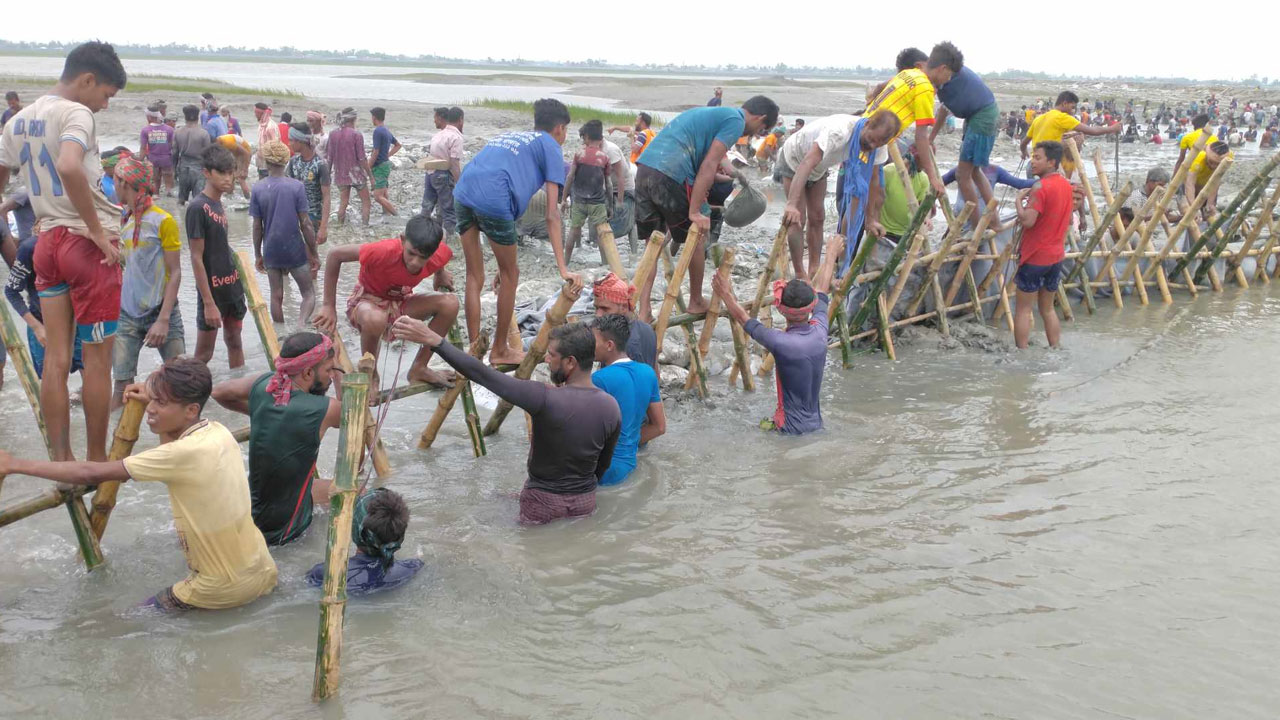 বাঁধ মেরামতের কাজে আসা লোকজন জানান, মঙ্গলবার সকালে ঘূর্ণিঝড় রেমালের দাপট কমে যায়। এ সময় কপোতাক্ষ নদে জোয়ারের চাপও একটু কমে আসে। ওই সময় গ্রামের মানুষ ঝুড়ি-কোদাল নিয়ে বাঁধ মেরামতে লেগে পড়ে। প্রথম দিনে ভেঙে যাওয়া বাঁধের নিচের অংশে বাঁশের চালা পুঁতে সেখানে বালুর বস্তা ফেলে রাখা হয়। এতে লোকালয়ে পানির চাপ অনেকাংশে কমে যায়। এ অবস্থায় বুধবার সকালে দুই শতাধিক মানুষ মূল ভাঙন মেরামতে কাজ শুরু করে। দুপুরের আগেই বাঁধটির ৮০ ভাগ মেরামত কাজ সম্পন্ন করা হয়। দুপুর পৌনে ২টার দিকে নদীতে পূর্ণ জোয়ারের সময় পানির চাপে তা ভেঙে যায়।
