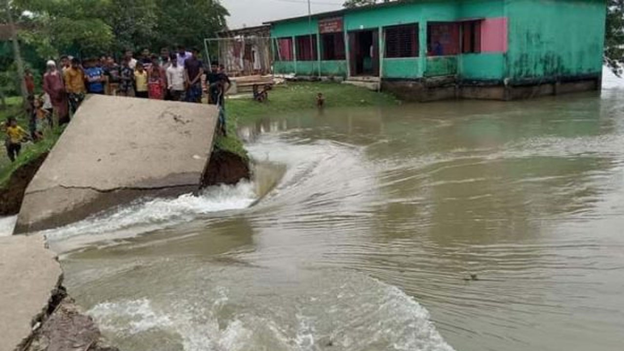স্থানীয় বাসিন্দা নজরুল ইসলাম জানান, দুপুরের দিকে হঠাৎ করেই কামারকান্দি সরকারি প্রাথমিক বিদ্যালয়ের সামনের সড়কটি ঢলের পানির প্রবল চাপে ভেঙে যায়। এতে এলাকার মানুষ চরম ভোগান্তিতে পড়েছেন।