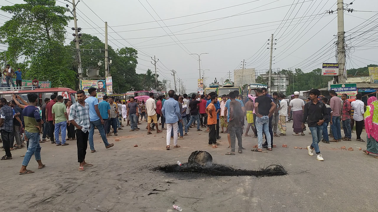 ফরিদপুরে নির্বাচন স্থগিত করার প্রতিবাদে শ্রমিকদের মহাসড়ক অবরোধ