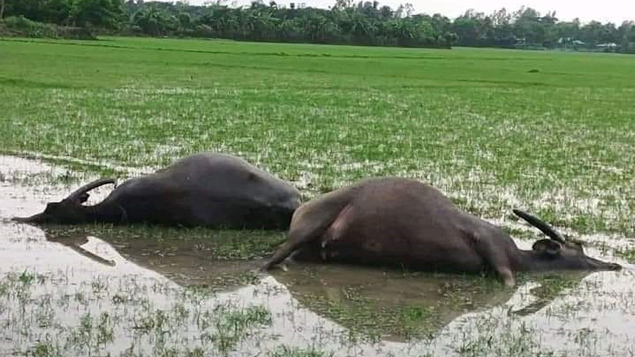 স্থানীয় সূত্রে জানা গেছে, দুপুরের দিকে ইউনিয়নের পূর্ব বড় ধলীর চরাঞ্চলে স্থানীয় কৃষক হোনান উদ্দিনের ৩টি মহিষ, মো. বাদশা মিয়ার একটি মহিষ, আবু তাহেরের একটি গাভি ও জাহাঙ্গীরের ৭টি ভেড়া বজ্রপাতে মারা যায়। বৃষ্টি শেষে কৃষকরা মাঠে খোঁজ নিতে গিয়ে পশুগুলো মৃত অবস্থায় পানিতে পড়ে থাকতে দেখেন।