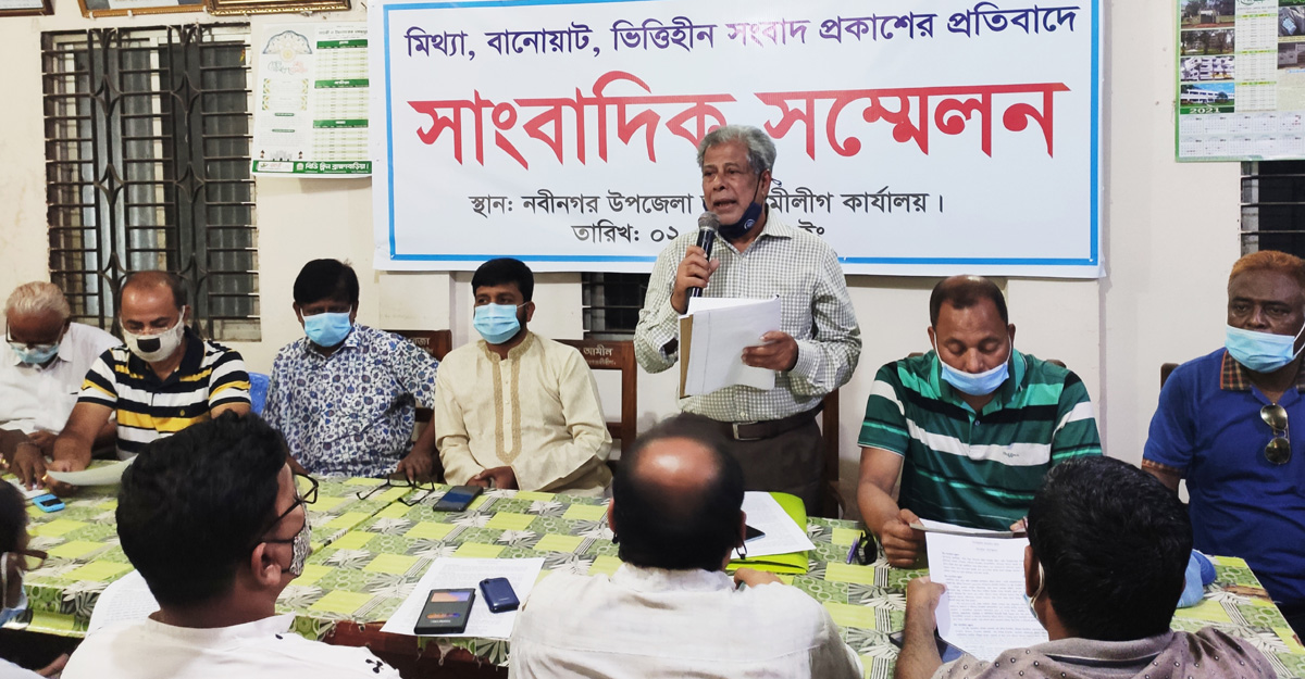 ব্রাহ্মণবাড়িয়া-৫ (নবীনগর) আসনের সংসদ সদস্য এবাদুল করিম ও নবীনগর উপজেলা আওয়ামী লীগের মুক্তিযুদ্ধবিষয়ক সম্পাদক নজরুল ইসলামকে নিয়ে ফেসবুকে লাইভ টক শোতে মানহানিকর আলোচনা করার প্রতিবাদে সংবাদ সম্মেলন অনুষ্ঠিত হয়েছে।