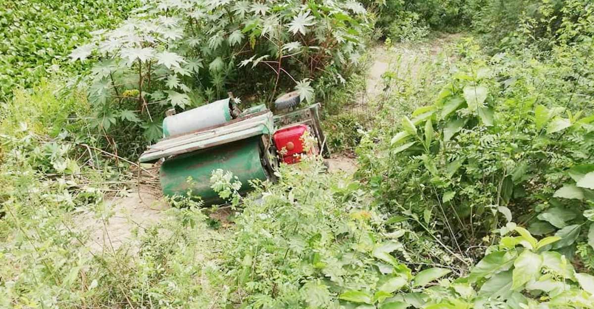 নিয়ন্ত্রণ হারিয়ে খাদে ধান মাড়াই মেশিন
