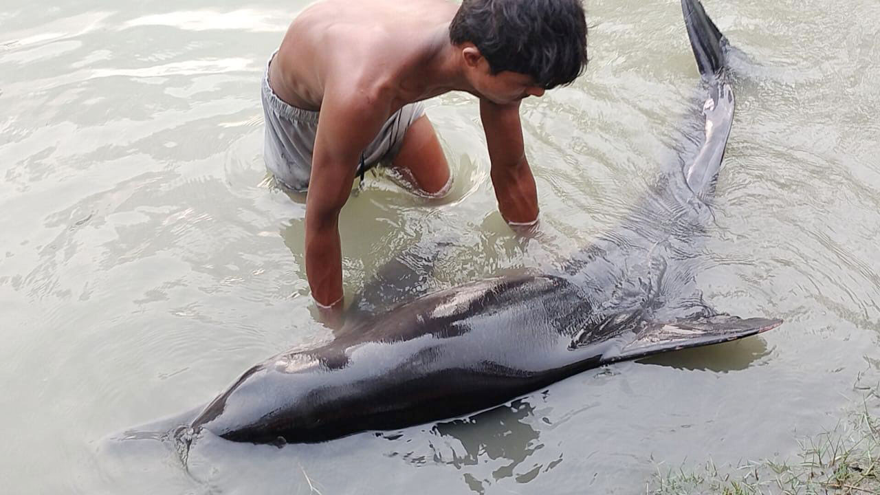 আন্ধারমানিক নদীর মোহনায় ভেসে এলো জীবিত ডলফিন