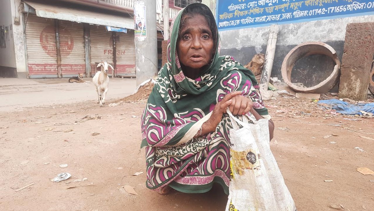 দুঃখ প্রকাশ করে তিনি বলেন, ‘এখন নাতি ও ভাইয়ের এক ছেলেকে সঙ্গে নিয়ে একটি ছাপড়া ঘর ভাড়া করে থাকি। নাতি ও ভাইয়ের ছেলে ছাড়া আমার দুনিয়ায় এখন আর কেউ নাই। আমার বয়স হইছে, এখন আর কাজ করতে পারি না। একটু হাঁটলেই বসতে হয়। তারপরও আজ বের হইছি। ঈদের দিন ওদের মুখে দুইটা ভালো খাবারের জন্য মানুষের বাড়ি-বাড়ি যাচ্ছি। কিন্তু কেউ দিতে চায় না, তাড়িয়ে দেয়।’
