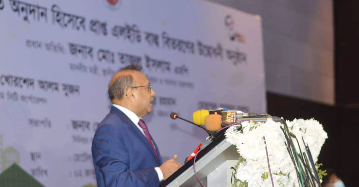 প্রধান অতিথির বক্তব্য রাখছেন স্থানীয় সরকার, পল্লী উন্নয়ন ও সমবায়মন্ত্রী মো. তাজুল ইসলাম