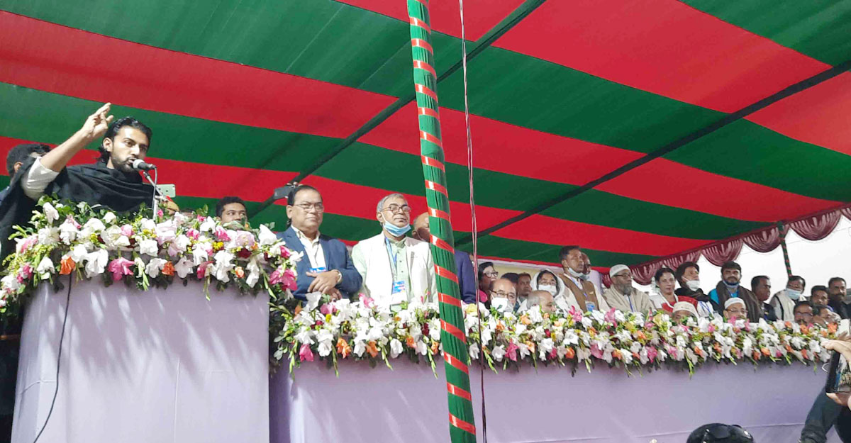 সমাবেশে প্রধান অতিথির বক্তব্য দিচ্ছেন সংসদ সদস্য শেখ তন্ময়
