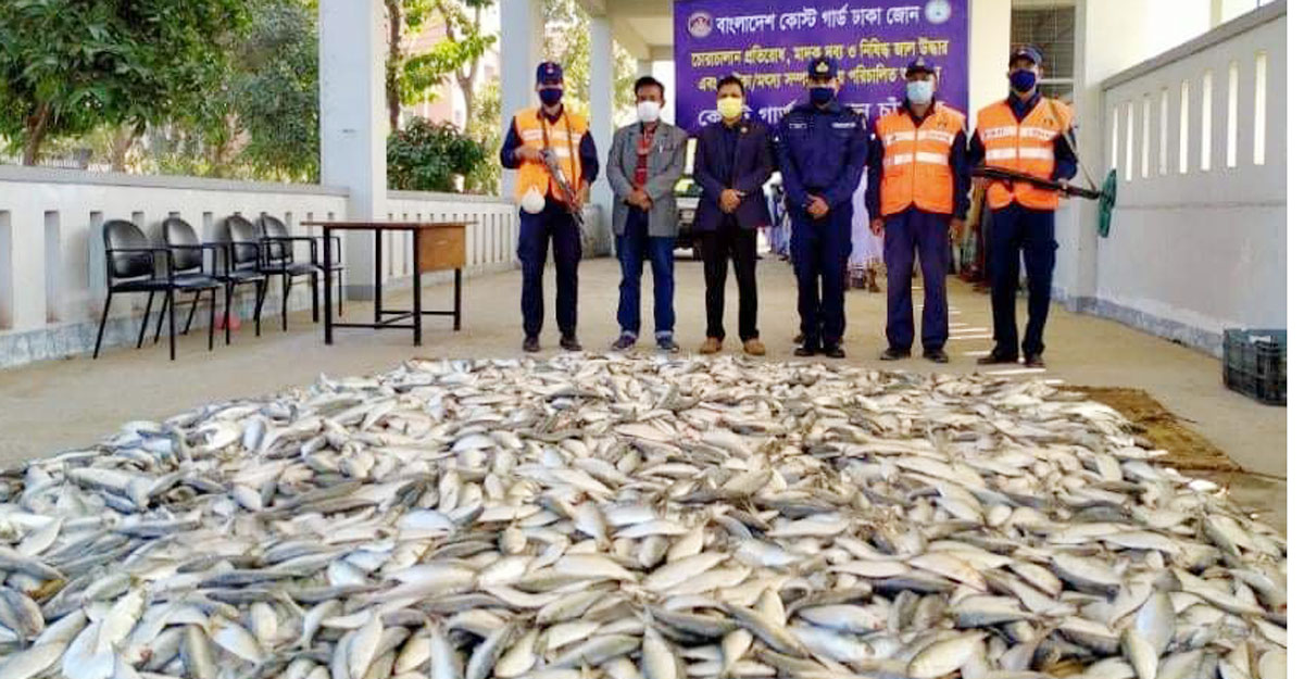 চাঁদপুরে লঞ্চ থেকে ২৫শ কেজি জাটকা জব্দ করে কোস্ট গার্ড