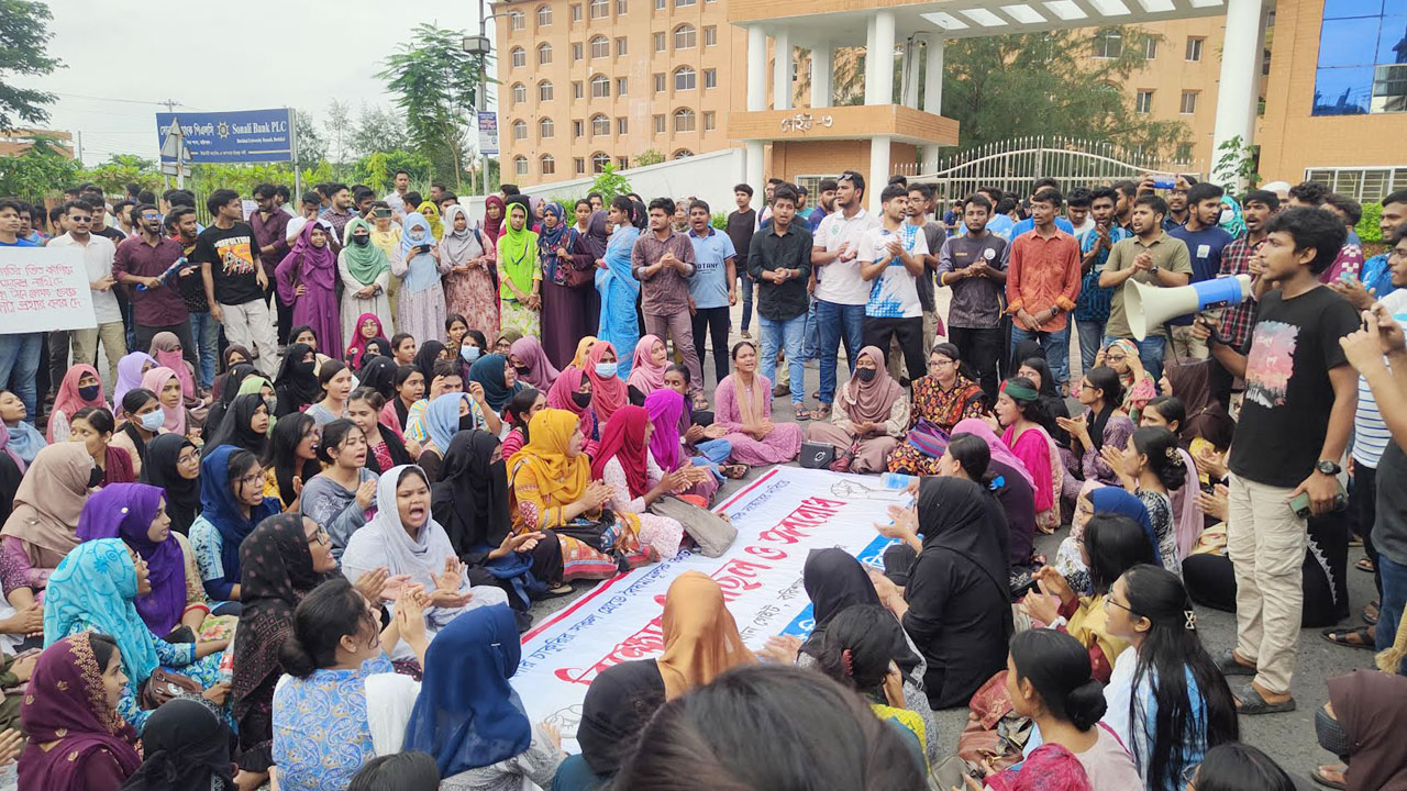 এর আগে বিকেল সাড়ে ৩টার দিকে সড়ক অবরোধের জন্য মিছিলসহকারে এগিয়ে এলে বিশ্ববিদ্যালয়ের প্রধান ফটক আটকে দেন পুলিশ। বিপুল সংখ্যক পুলিশ অবরোধ স্থান ও আশেপাশে অবস্থান নেয়। তবে শিক্ষার্থীরা পুলিশের বাধা টপকে গেট খুলে সড়কে অবস্থান নেন। পরবর্তীতে পুলিশ অবরোধ স্থান থেকে দূরে অবস্থান নেয়।