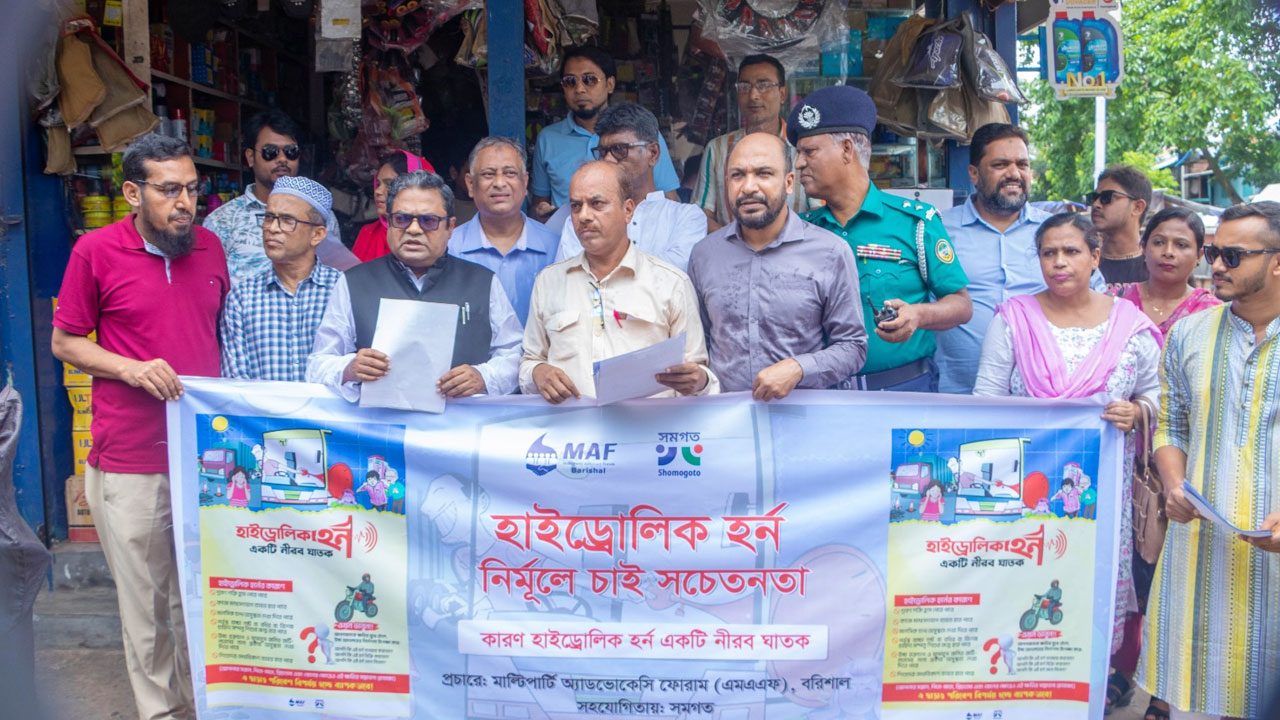 গাড়িতে হাইড্রোলিক হর্ন ব্যবহারে নিরুৎসাহিত করতে বরিশালে প্রচারণা