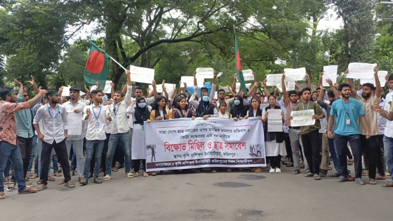 কোটা সংস্কারের দাবিতে আন্দোলনরত শিক্ষার্থীদের ওপর স্বেচ্ছাসেবক লীগের হামলায় ফরিদপুর কৃষি প্রশিক্ষণ ইনস্টিটিউটের উপাধ্যক্ষ, ছাত্রীসহ পাঁচজন আহত হয়েছেন। এর মধ্যে চারজনকে ফরিদপুরের বিভিন্ন হাসপাতালে ভর্তি করা হয়েছে।