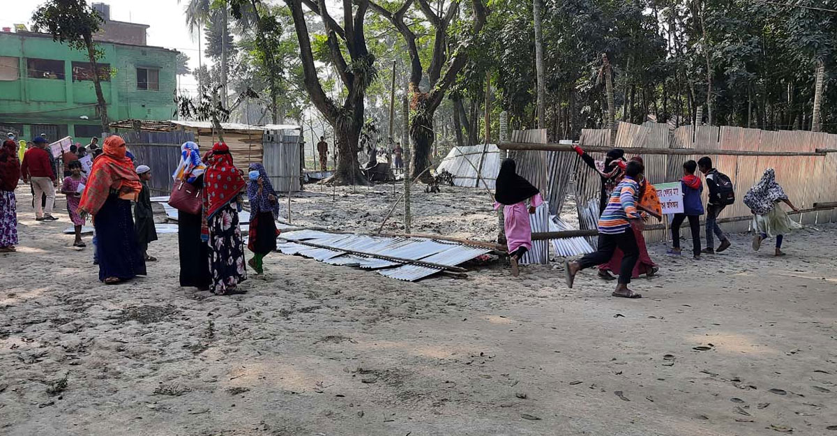 যশোরের অভয়নগরে ঘোপেরঘাট সরকারি প্রাথমিক বিদ্যালয়ের মাঠটি এভাবেই দখলমুক্ত করে অভিভাবক ও শিক্ষার্থীরা