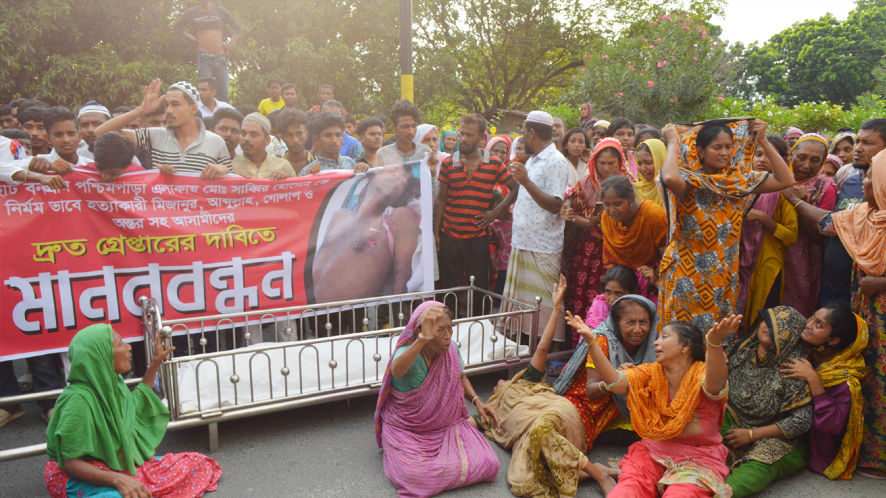 রোববার (২৮ জুলাই) বিকেল সাড়ে ৪টার দিকে মরদেহ নিয়ে বিক্ষোভ করেন তারা। বিক্ষোভ থেকে হত্যাকাণ্ডে জড়িতদের সর্বোচ্চ শান্তির দাবি করা হয়।