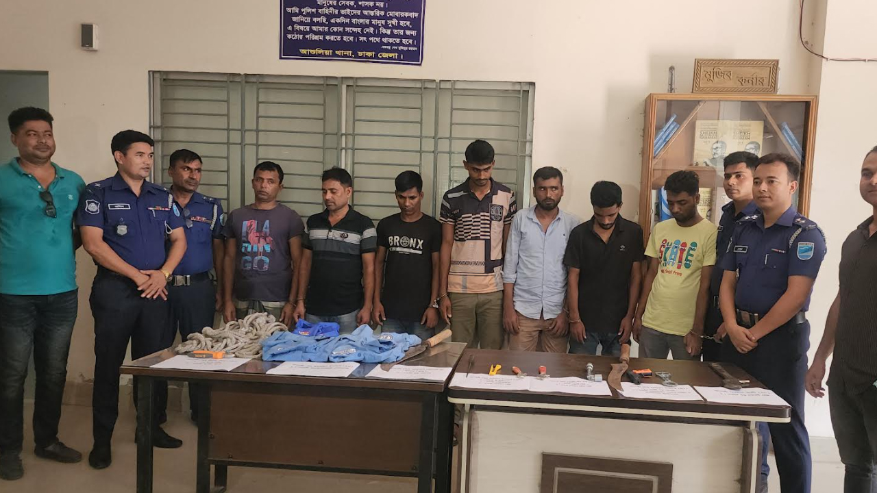 রোববার (২৮ জুলাই) দুপুরে ঢাকা জেলা উত্তরের অতিরিক্ত পুলিশ সুপার (ক্রাইম অ্যান্ড অপস) আব্দুল্লাহিল কাফী এক সংবাদ সম্মেলনে এ তথ্য নিশ্চিত করেন। এর আগে আশুলিয়ার বুড়িবাজার এলাকার ডাক্তার বাড়ি মহল্লায় ডাকাতির প্রস্তুতিকালে ওই ৭ জনকে আটক করে পুলিশ।