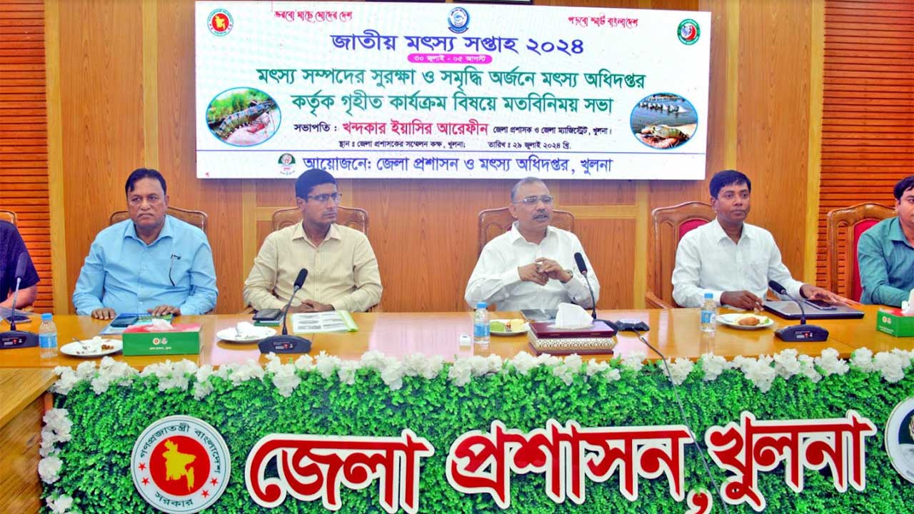 সোমবার (২৯ জুলাই) খুলনা জেলা প্রশাসকের সম্মেলন কক্ষে গণমাধ্যমকর্মীদের সঙ্গে মতবিনিময় সভায় জেলা মৎস্য কর্মকর্তা জয়বেদ পাল এ তথ্য জানান। জাতীয় মৎস্য সপ্তাহ-২০২৪ উদযাপনের আগে এ মতবিনিময় সভার আয়োজন করা হয়। জাতীয় মৎস্য সপ্তাহের এবারের প্রতিপাদ্য ‘ভরবো মাছে মোদের দেশ, গড়বো স্মার্ট বাংলাদেশ’।