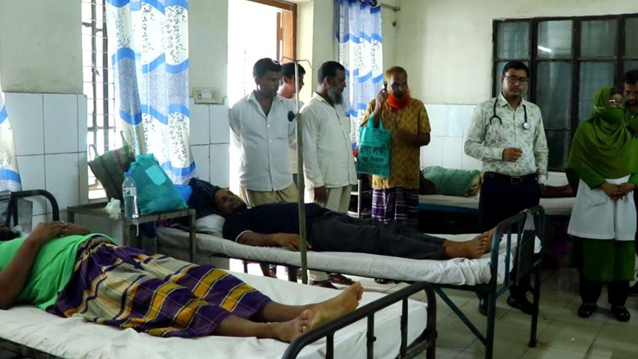 আহতরা হলেন- দত্তপুঙ্গলি গ্রামের মহসিন সরকারের ছেলে মো. মনিরুজ্জামান ও পলাশ সরকার, ভাতিজা শান্ত সরকার এবং ছোট ভাইয়ের স্ত্রী অরুণা খাতুন। আহত পল্লী চিকিৎসক হেলাল প্রামানিক পাশের পাছপাঙ্গুলী গ্রামের মৃত ফজলুর রহমানের ছেলে। তাদের ফরিদপুর উপজেলা স্বাস্থ্য কমপ্লেক্সে ভর্তি করা হয়েছে।