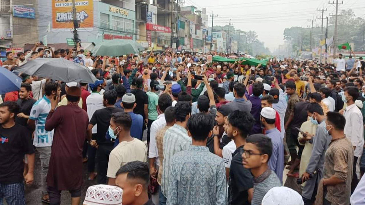 বৃষ্টিতে ভিজে নোয়াখালীতে শিক্ষার্থীদের গণমিছিল