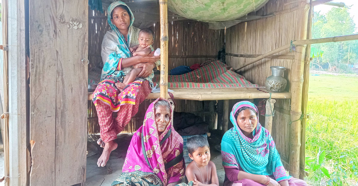 আমেনা বেগম (৩২) স্বামী মারা যাওয়ার ছয় দিন পরে চলে আসেন বাবার বাড়ি মানিকগঞ্জের শিবালয় উপজেলার উথুলী ইউনিয়নের ছোট বাহ্মণকুল গ্রামে। তার বাবা আবুল কাশেম এক দুর্ঘটনায় মারা যান। বর্তমানে পরিবারে আছেন মা অজিরন বেগম ও এক প্রতিবন্ধী বোন। টিন আর পাটখড়ি দিয়ে বানানো ভাঙাচোরা ঝুপড়ি ঘরেই তাদের বসবাস।