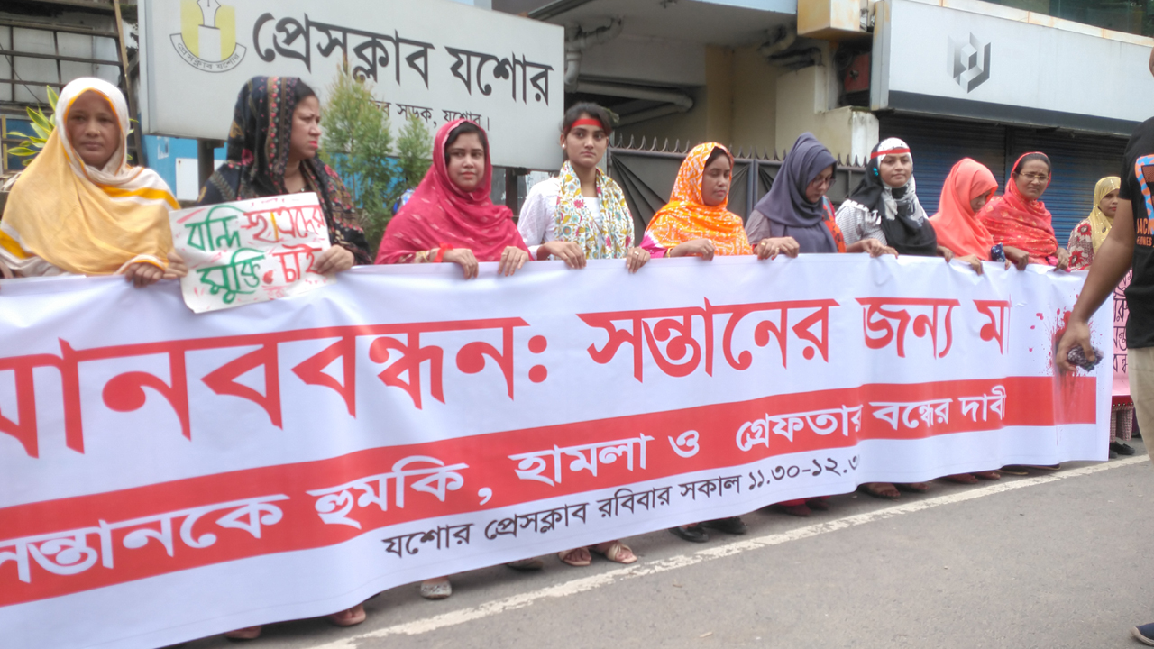 মানববন্ধনে তারা আরও বলেন, সরকার শুধু নির্বিচারে হত্যা করে থামেনি। আমাদের সন্তানদের অন্যায়ভাবে গ্রেপ্তার করেছে। আমরা অবিলম্বে আমাদের শিক্ষার্থীদের মুক্তি চাই, সন্তান হত্যার জবাব চাই এবং তাদের এক দফা মেনে নিতে হবে এবং বর্তমান সরকারের পদত্যাগ করতে হবে।