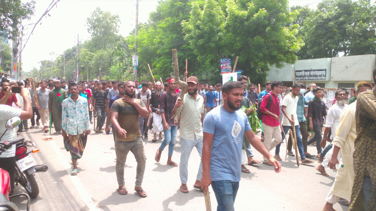অন্যদিকে, বেলা ১১টার দিকে যশোর শহরের দড়াটানা মোড়ে লাঠিসোঁটা নিয়ে বিক্ষোভ মিছিল বের করেন বিএনপি ও তার অঙ্গসংগঠনের নেতাকর্মীরা। দুপুর ১টার দিকে আইনজীবীদের একটি পক্ষ শিক্ষার্থীদের আন্দোলনে সংহতি প্রকাশ করে জজকোর্ট থেকে বিক্ষোভ মিছিল বের করা হয়।