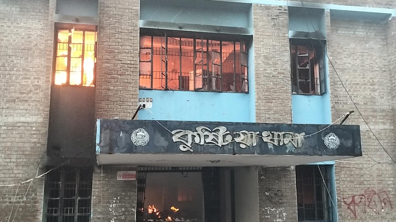 কুষ্টিয়া থানা আগুনে পুড়ে অঙ্গার, অস্ত্র-গাড়ি লুটপাট