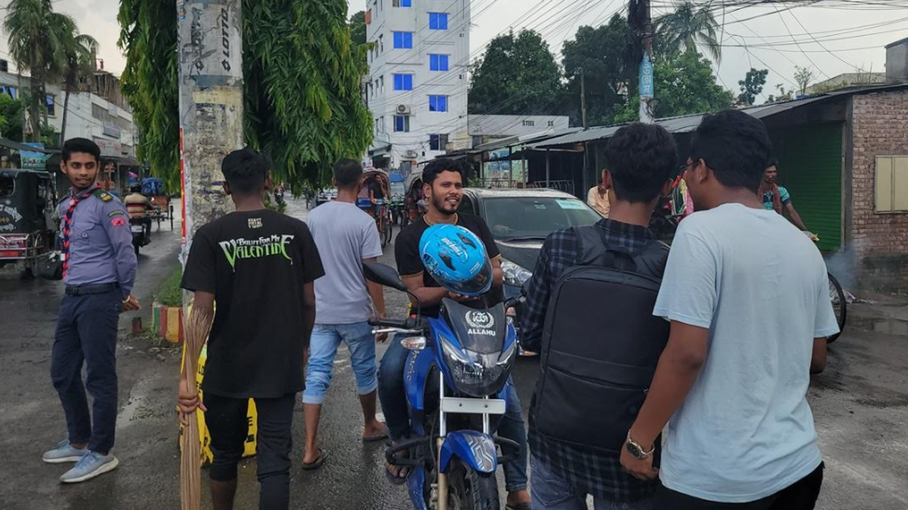 বুধবার (৭ আগস্ট) সকাল সাড়ে ৯টার পর বড়পুল মোড়ে বৈষম্য বিরোধী ছাত্র আন্দোলনের ব্যানারে বিভিন্ন স্কুল ও কলেজের সাধারণ শিক্ষার্থীরা এ পরিষ্কার-পরিচ্ছন্নতায় নামে। শুধু তাই নয়, তারা একই সঙ্গে পুলিশের অনুপস্থিতিতে শহরের বিভিন্ন পয়েন্টে ট্রাফিক ব্যবস্থা নিয়ন্ত্রণ করছেন।