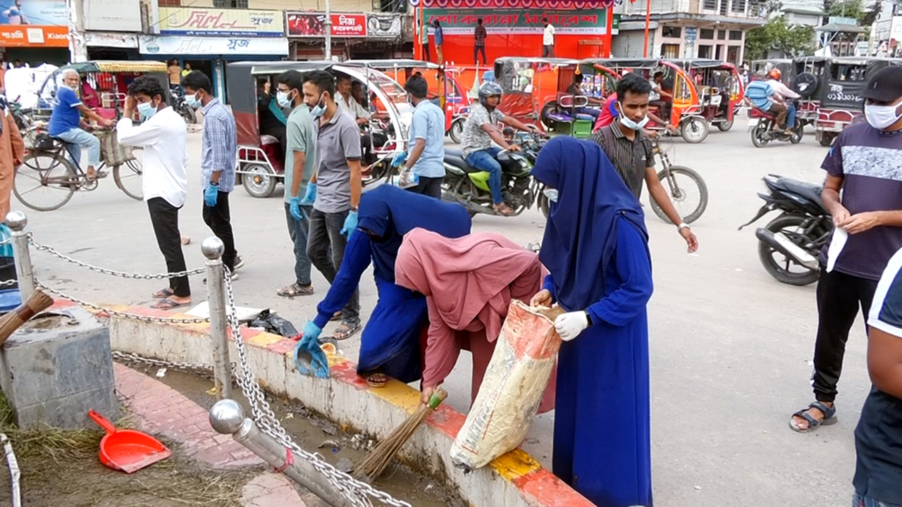 ঝিনাইদহে শহর পরিষ্কার করতে রাস্তায় শিক্ষক-শিক্ষার্থীরা