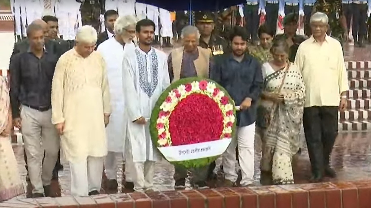 শুক্রবার (৯ আগস্ট) সকাল ৯টা ৫০ মিনিটের দিকে প্রধান উপদেষ্টা মহান মুক্তিযুদ্ধে শহীদদের প্রতি শ্রদ্ধা নিবেদন করেন। এ সময় তার সঙ্গে অন্য উপদেষ্টারাও ছিলেন।