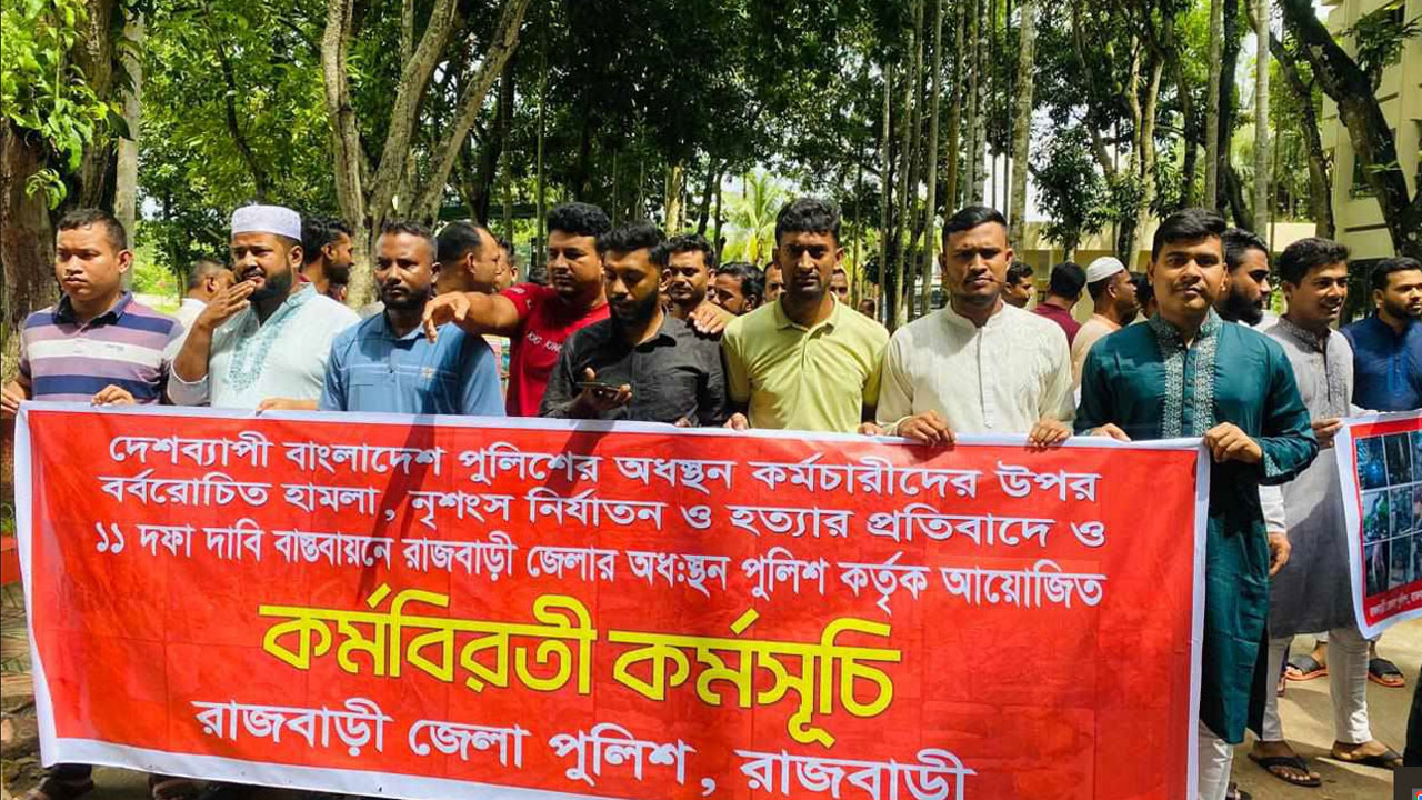রাজবাড়ীতে পুলিশের স্লোগান— আমার ভাইয়ের রক্ত বৃথা যেতে দেব না