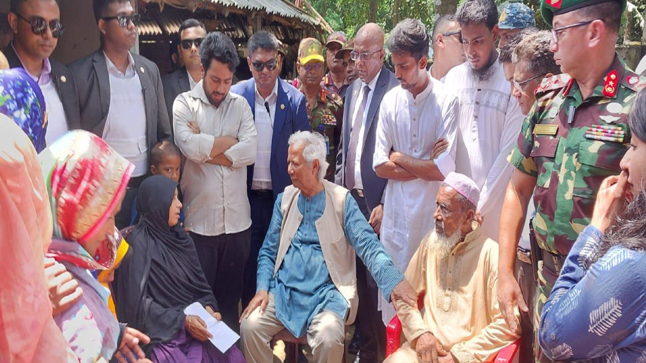 এর আগে শনিবার (১০ আগস্ট) সকালে হেলিকপ্টারযোগে রংপুরের পীরগঞ্জে আসেন ড. মুহাম্মদ ইউনূস। আবু সাঈদের বাড়ি থেকে তিনি আসেন বেগম রোকেয়া বিশ্ববিদ্যালয়ে। সেখানে বৈষম্যবিরোধী ছাত্র আন্দোলনের সমন্বয়কসহ শিক্ষার্থীদের সঙ্গে মতবিনিময় করেন। পরে আহতদের দেখতে রংপুর মেডিকেল কলেজ (রামেক) হাসপাতালে যান। এরপর রংপুর সার্কিট হাউসে তিনি সাংবাদিকদের সঙ্গে কথা বলেন।