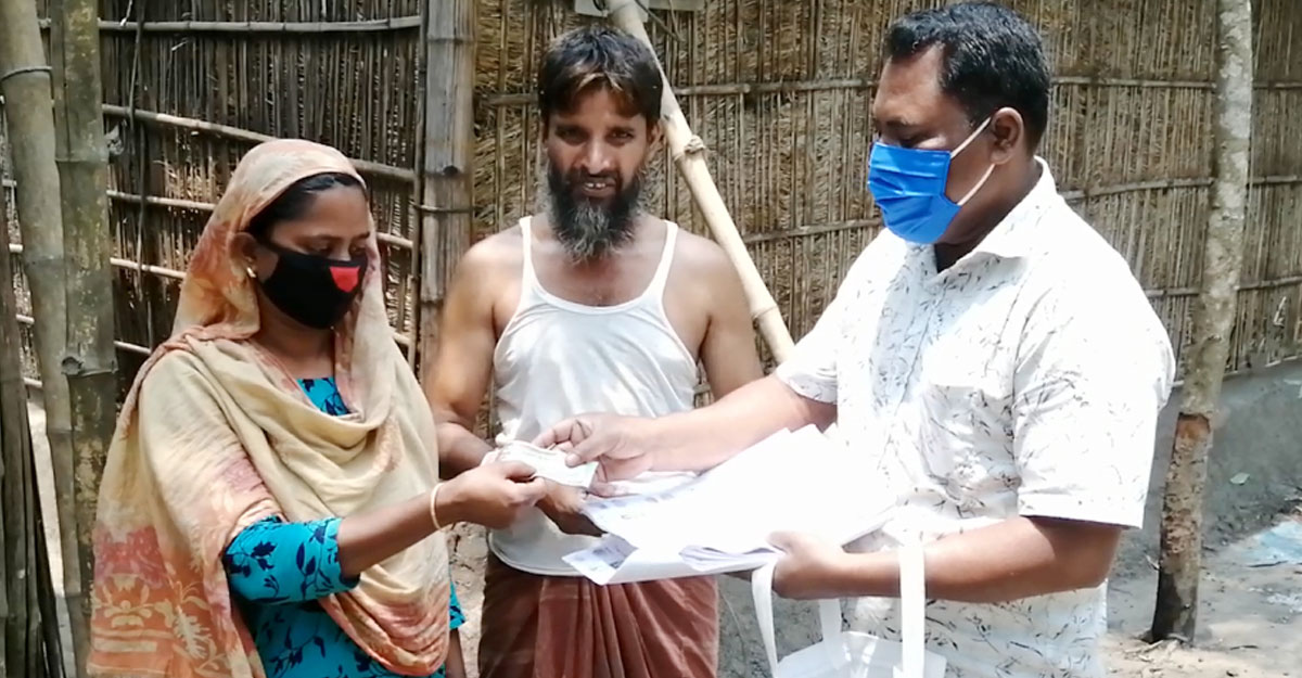 বাড়ি বাড়ি গিয়ে প্রধানমন্ত্রীর উপহার পৌঁছে দিচ্ছেন চেয়ারম্যান