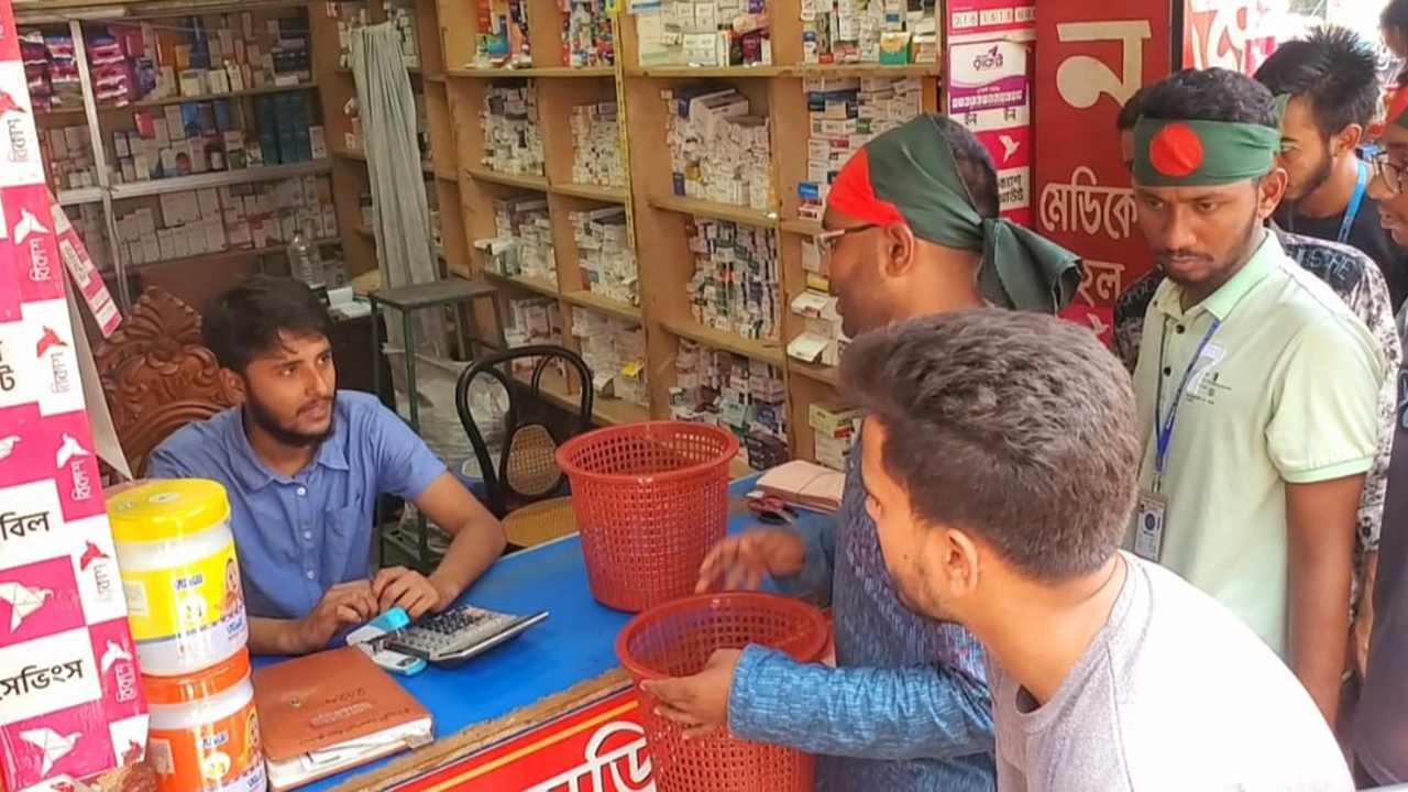 কিশোরগঞ্জে ব্যবসাপ্রতিষ্ঠানে শিক্ষার্থীদের ডাস্টবিন বিতরণ