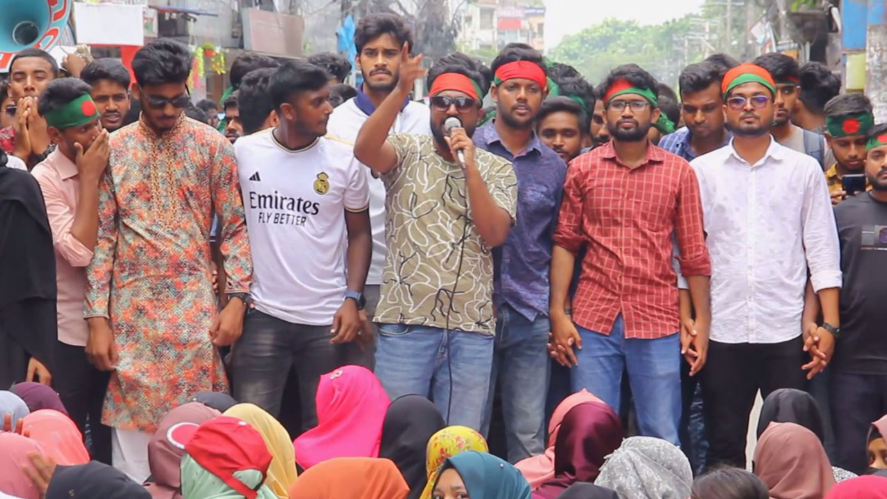 এ সময় শিক্ষার্থীরা স্লোগান দিতে থাকেন— ‘ফাঁসি ফাঁসি ফাঁসি চাই, খুনি হাসিনার ফাঁসি চাই,’ ‘আমার ভাই কবরে, খুনি কেন বাহিরে,’ ‘ভারতের দালালেরা হুঁশিয়ার সাবধান,’ ‘ষড়যন্ত্রকারীর কালো হাত ভেঙে দাও গুঁড়িয়ে দাও’ ইত্যাদি স্লোগানে রাজপথ মুখরিত করেন তোলেন।