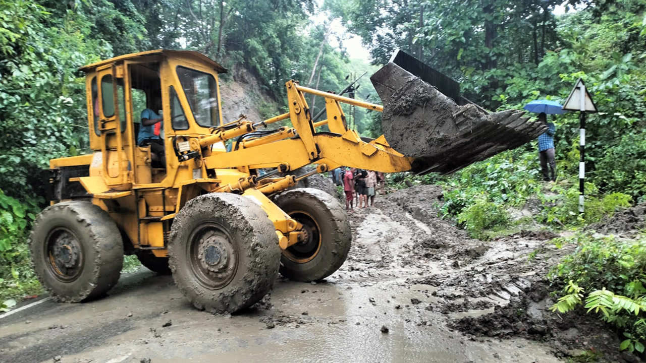 সড়কে যানবাহন চলাচল পরিপূর্ণ স্বাভাবিক করতে খাগড়াছড়ি সড়ক বিভাগ এবং ফায়ার সার্ভিসের কর্মীরা সড়ক থেকে মাটি সরানোর কাজ করে যাচ্ছে।