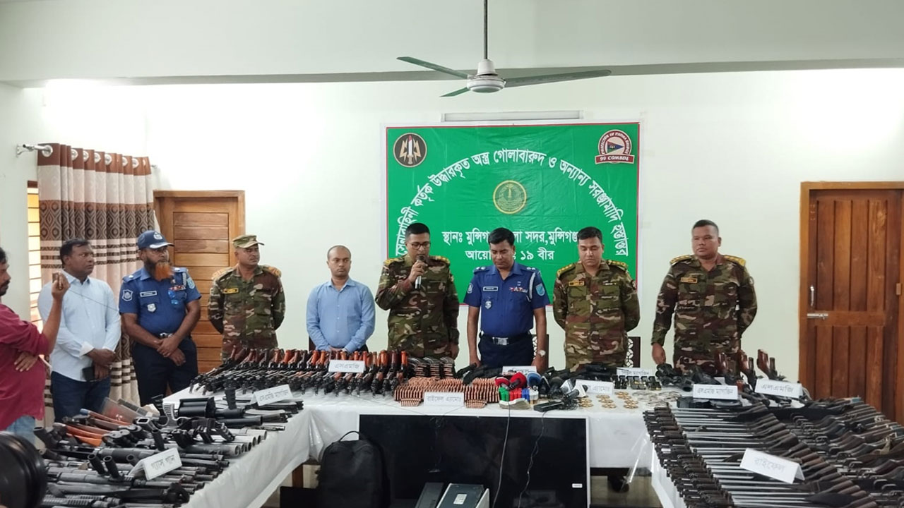 মুন্সীগঞ্জে উদ্ধার হওয়া অস্ত্র-গোলাবারুদ পুলিশের কাছে হস্তান্তর