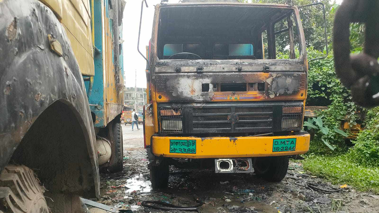 টঙ্গীতে থানার গেটে ট্রাকে আগুন