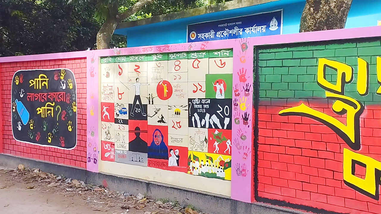 শিক্ষার্থীদের ব্যতিক্রমী অঙ্কনে সেজেছে জরাজীর্ণ দেয়াল