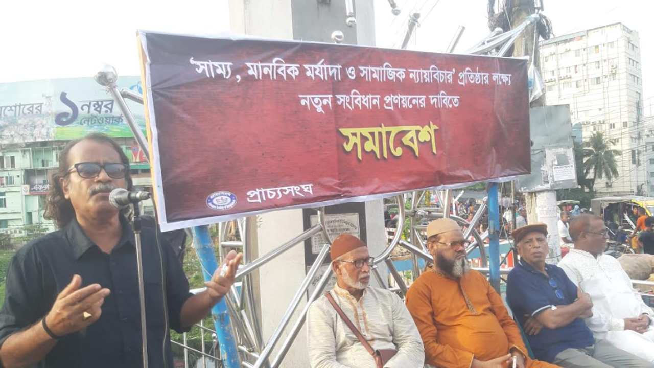 নতুন সংবিধান প্রণয়নের দাবিতে যশোরে সমাবেশ করেছে জ্ঞানচর্চাভিত্তিক সংগঠন প্রাচ্যসংঘ যশোর। শুক্রবার (২৩ আগস্ট) বিকেলে যশোর শহরের দড়াটানা ভৈরব চত্বরে এ সমাবেশের আয়োজন করা হয়।