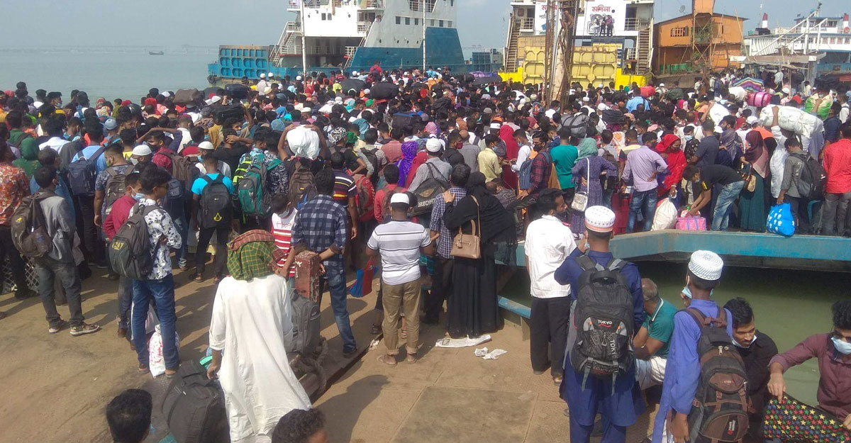 শিমুলিয়ায় পারাপারের অপেক্ষায় হাজার হাজার যাত্রী