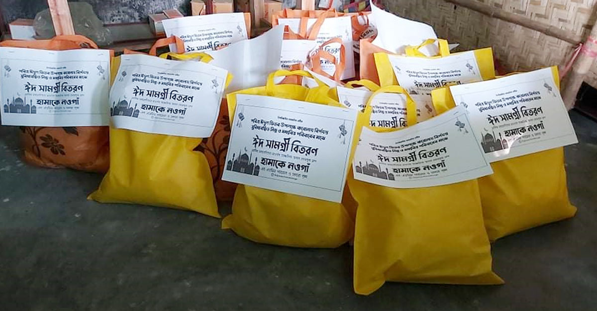ফেসবুক গ্রুপ ‘হামাকে নওগাঁ’র সদস্যদের আর্থিক সহযোগিতায় ১০০ অসহায় মায়ের মুখে হাসি ফুটেছে। শুক্রবার থেকে রোববার পর্যন্ত তারা জেলার বিভিন্ন উপজেলার ১০০ অসহায় মায়ের হাতে ঈদ উপহার তুলে দেন।