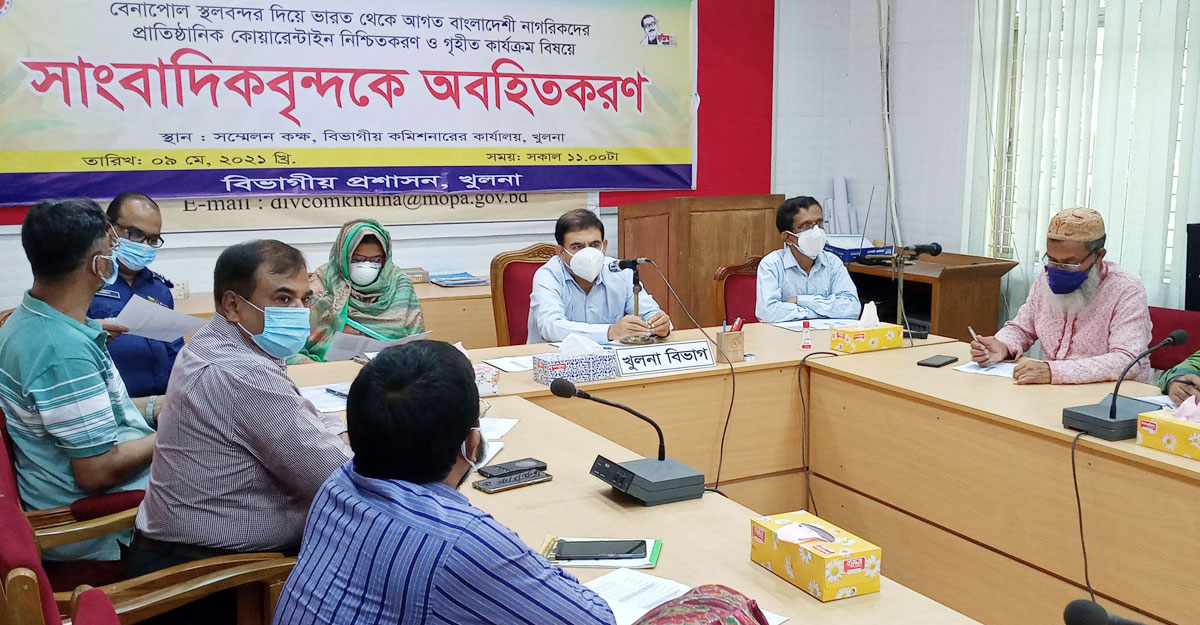 বেনাপোল স্থলবন্দর দিয়ে ভারত থেকে আগত বাংলাদেশি নাগরিকদের প্রাতিষ্ঠানিক কোয়ারেন্টাইন নিশ্চিতকরণ ও গৃহীত কার্যক্রম বিষয়ে গণমাধ্যমকর্মীদের অবহিতকরণে বিভাগীয় কমিশনারের সম্মেলন কক্ষে এ সভার আয়োজন করা হয়।