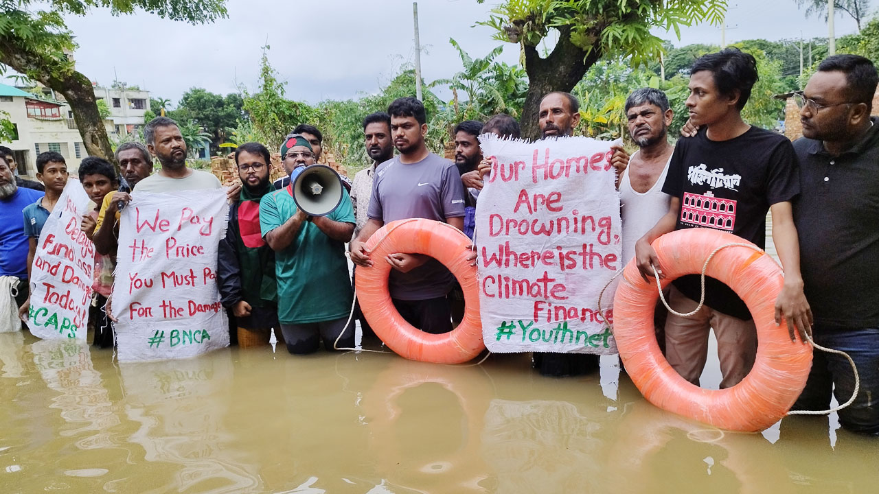 মানববন্ধনে ত্রাণের বস্তা দিয়ে বানানো বিভিন্ন প্ল্যাকার্ডে উজানের সব বাঁধ ভেঙে দেওয়া, পানির ন্যায্য হিস্যা আদায়, দায়ী রাষ্ট্রকে বিচারের মুখোমুখি করা ও জলবায়ু পরিবর্তনের ক্ষতিপূরণের দাবি জানান তারা।