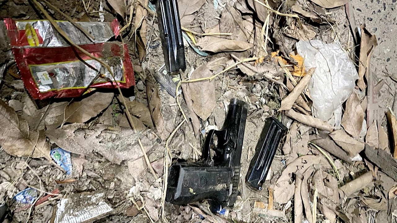 নাটোর শহরে রাস্তার পাশে পড়েছিল একটি বিদেশি পিস্তলসহ ১১ রাউন্ড গুলি। পরে সেগুলো উদ্ধার করেছে পুলিশ।