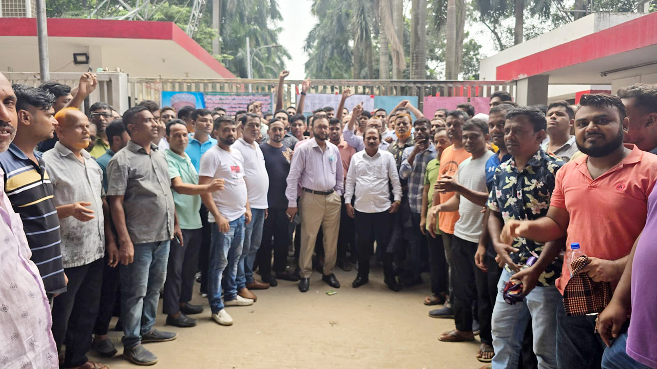 চাকরি স্থায়ীকরণের দাবিতে গাজীপুরে শ্রমিকদের বিক্ষোভ