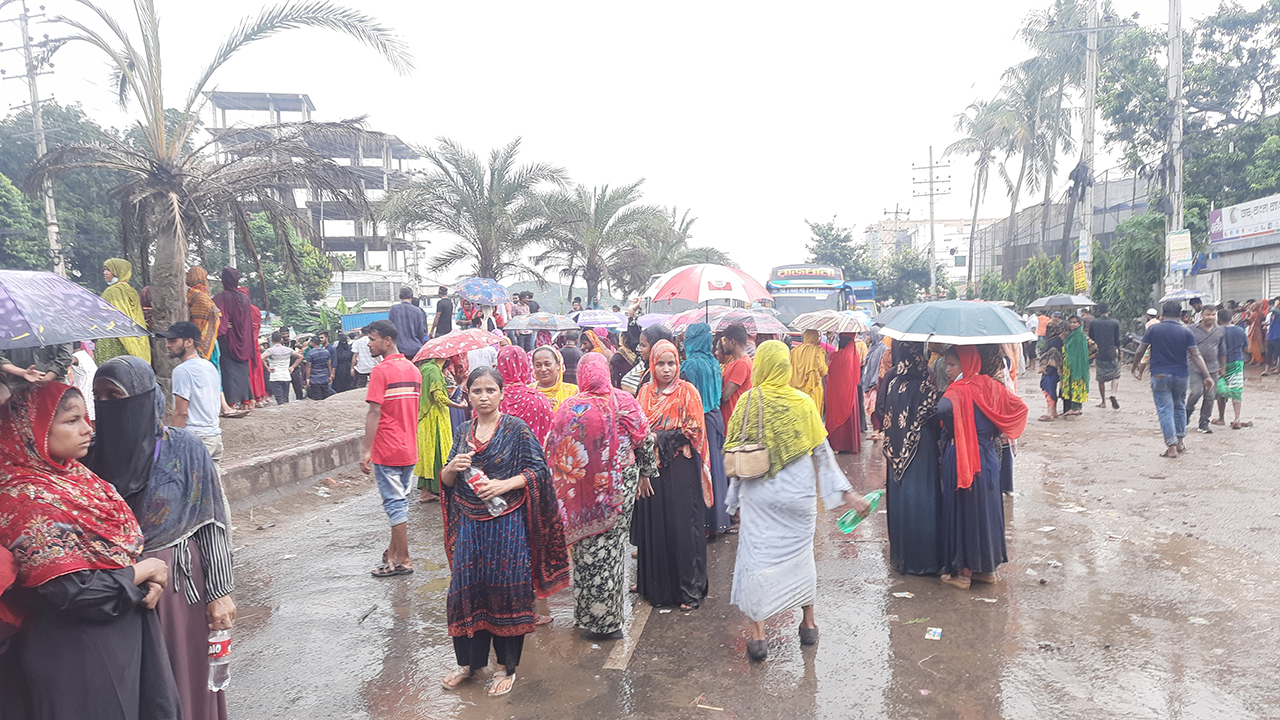 বৃষ্টির মধ্যে আশুলিয়ার সড়কে শ্রমিকদের বিক্ষোভ, যাত্রীদের ভোগান্তি