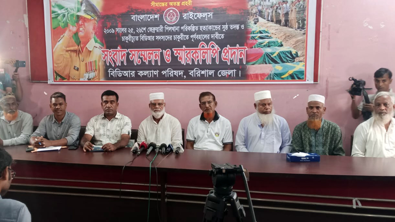 পিলখানায় বিডিআর বিদ্রোহের ঘটনার সুষ্ঠু তদন্ত ও চাকরিচ্যুত সকল বিডিআর সদস্যদের পুনর্বহালের দাবি জানানো হয়েছে। রোববার (১৫ সেপ্টেম্বর) দুপুরে বরিশাল প্রেসক্লাব মিলনায়তনে সংবাদ সম্মেলন করে এই দাবি তোলেন চাকরিচ্যুত বিডিআর সদস্যরা। এ সময় সাজা শেষ হলেও আইনি জটিলতায় ১৬ বছর ধরে কারাগারে থাকা সদস্যদের ৩০ দিনের মধ্যে মুক্তির আল্টিমেটাম দেন তারা।