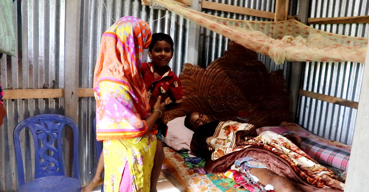 শুয়ে আছেন আরিফ হোসেন, পাশে তার বোন