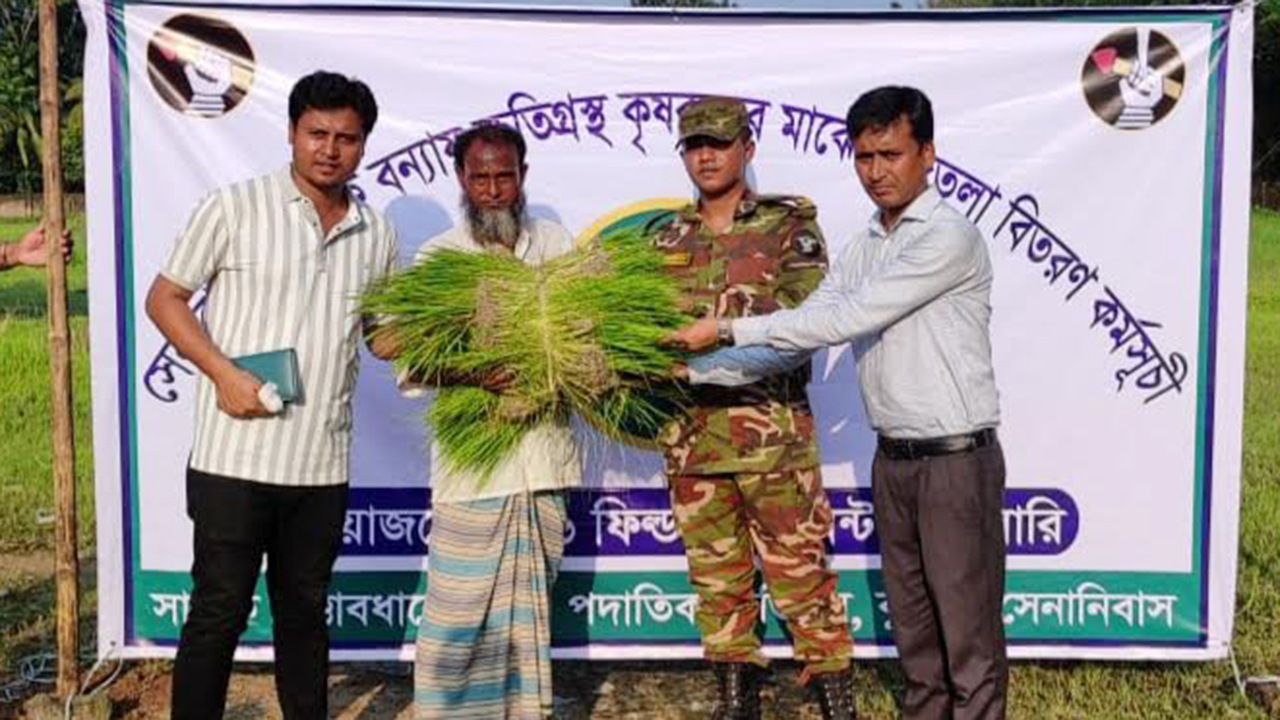 বন্যায় ক্ষতিগ্রস্ত কৃষকের মাঝে সেনাবাহিনীর ধানের চারা বিতরণ