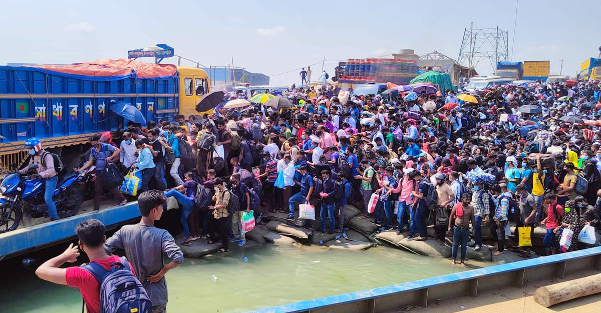 মুন্সিগঞ্জের শিমুলিয়ায় ঘরমুখো মানুষের চাপ বেড়েই চলেছে। ১৬টি ফেরিতেও যাত্রী পারাপারে হিমশিম খাচ্ছে ঘাট কর্তৃপক্ষ। শিমুলিয়া ঘাট ও তার আশেপাশের এলাকায় হাজার হাজার মানুষ পদ্মাপারের অপেক্ষায় প্রহর গুনছে।