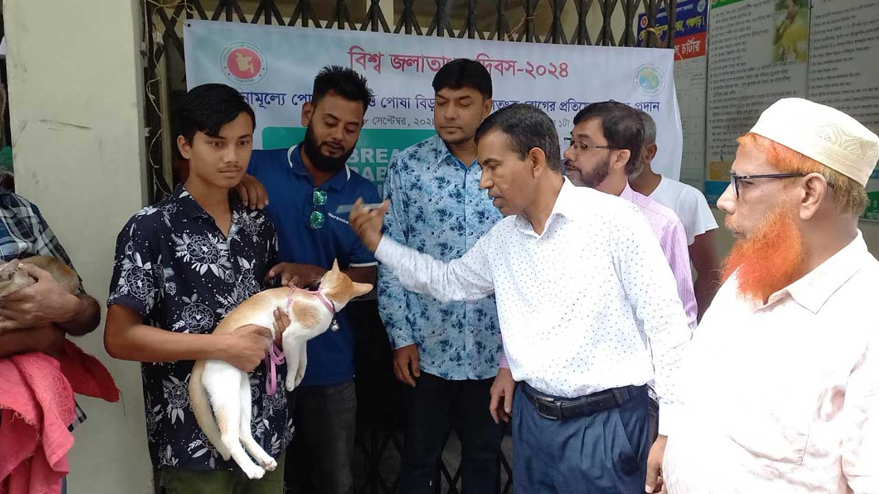 ‘জলাতঙ্ক নির্মূলে প্রয়োজন সব প্রতিবন্ধকতা নিরসন’-প্রতিপাদ্যে এবার পালিত হচ্ছে বিশ্ব জলাতঙ্ক দিবস। দিবসটি উপলক্ষ্যে ফারিন ফার্মেসি অ্যান্ড এনিমেল হেল্থ এক্সপ্রেস নামের একটি প্রতিষ্ঠানের সৌজন্যে পঞ্চগড়ে শতাধিক পোষাপ্রাণীকে বিনামূল্যে ভ্যাকসিন (টিকা) দেওয়া হয়েছে।