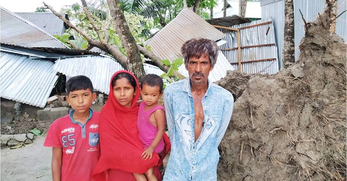 আব্দুল হাকিম জানান, গত ১০ মে রাতে কালবৈশাখী ঝড়ে হঠাৎ তাদের বাড়ির পেছনে একটি বড় গাছ চালের ওপরে এসে পড়ে। এসময় তিনি, তার স্ত্রী, ২ ছেলে এবং ২ মেয়ে ঘরের ভেতরেই ছিলেন।